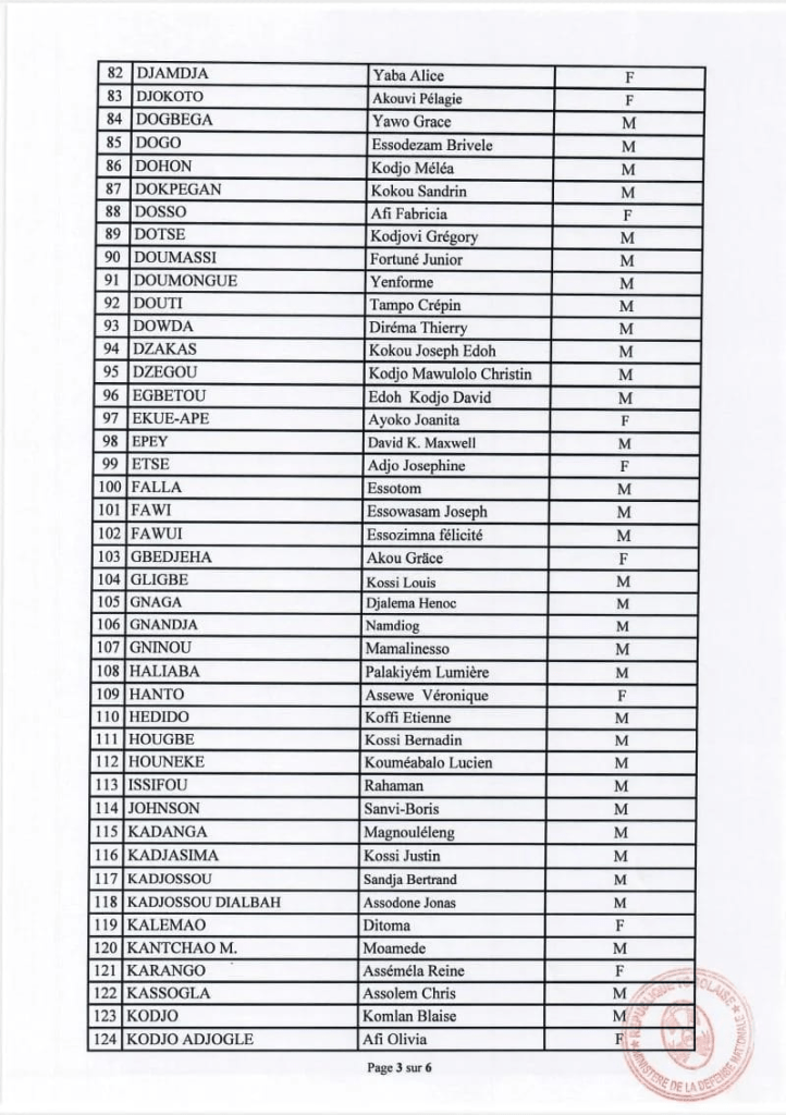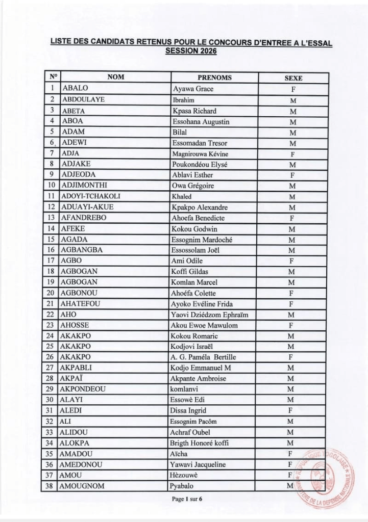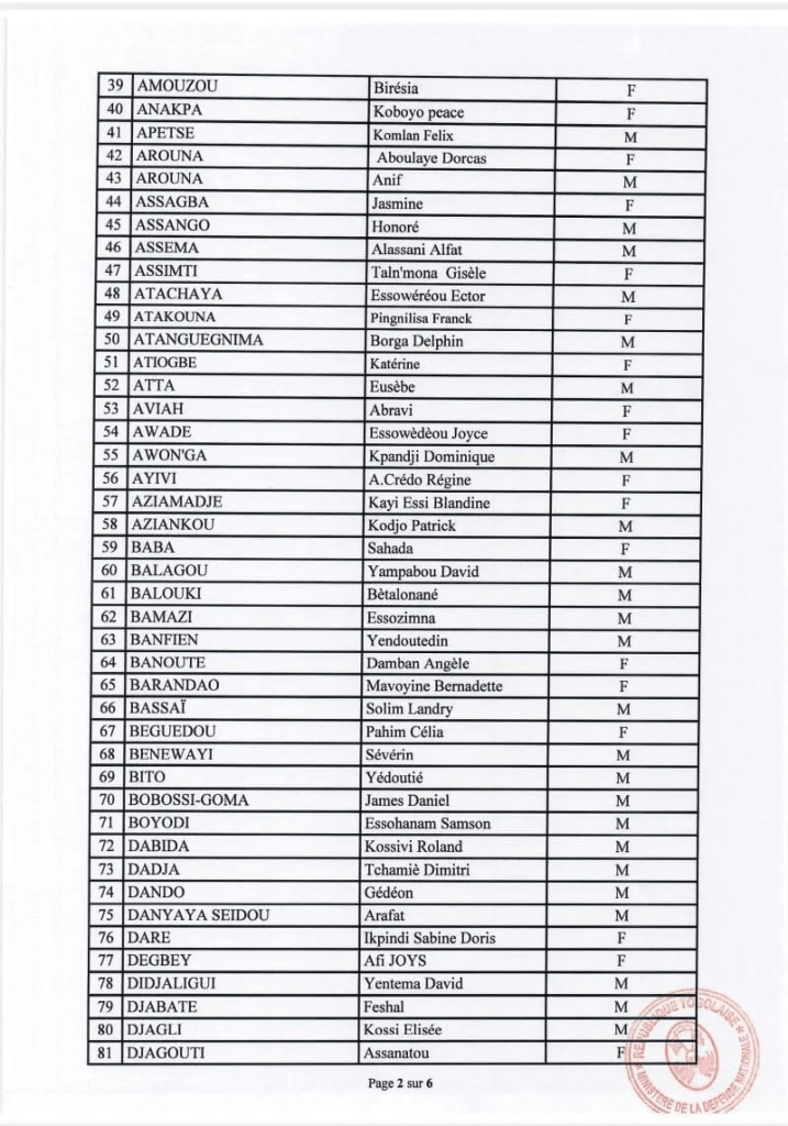 Par ailleurs, le ministère précise que la liste intégrale des candidats retenus est consultable dans les colonnes du quotidien national Togo-Presse. Elle est également disponible en ligne via le portail officiel du ministère, accessible à l’adresse www.defense.gouv.tg.